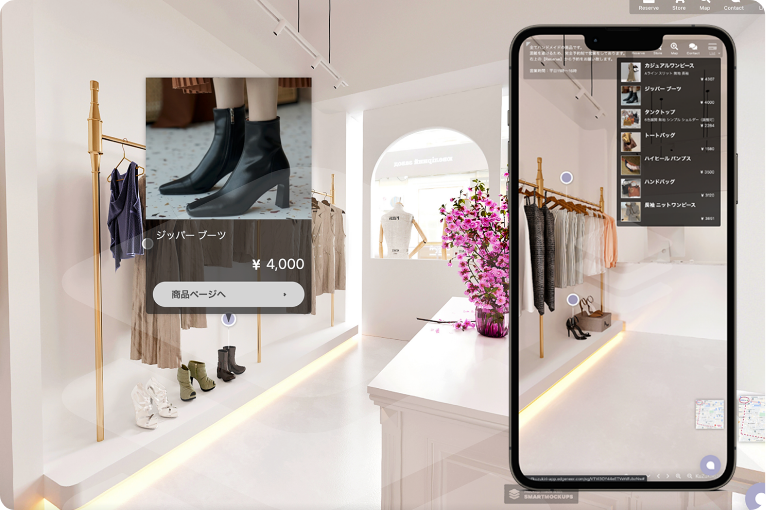 CG空間や実写空間の中に、貴社商品を配置して、360°バーチャルEC